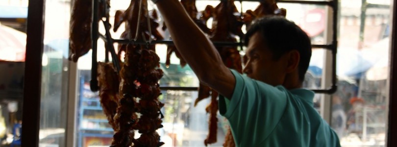 Cuando lo piensas, comerse un platito de conejo asado resulta un tanto extraño a las 10 de la mañana de un miércoles. Pero lo cierto es que ese primer plato entró tan bien que le siguieron otros diez, o doce o quince de una forma muy fácil durante las siguientes horas. No hace falta comérselo todo, se trata de probar diferentes platos locales: curry verde, un bollo con cerdo a la barbacoa, té thai refrescante, granizado de coco, ensalada de mango… O incluso una tapa de cerebro para los más valientes. Curiosamente, ése fue uno de los platos preferidos por buena parte del grupo (bueno, los que lo probaron).